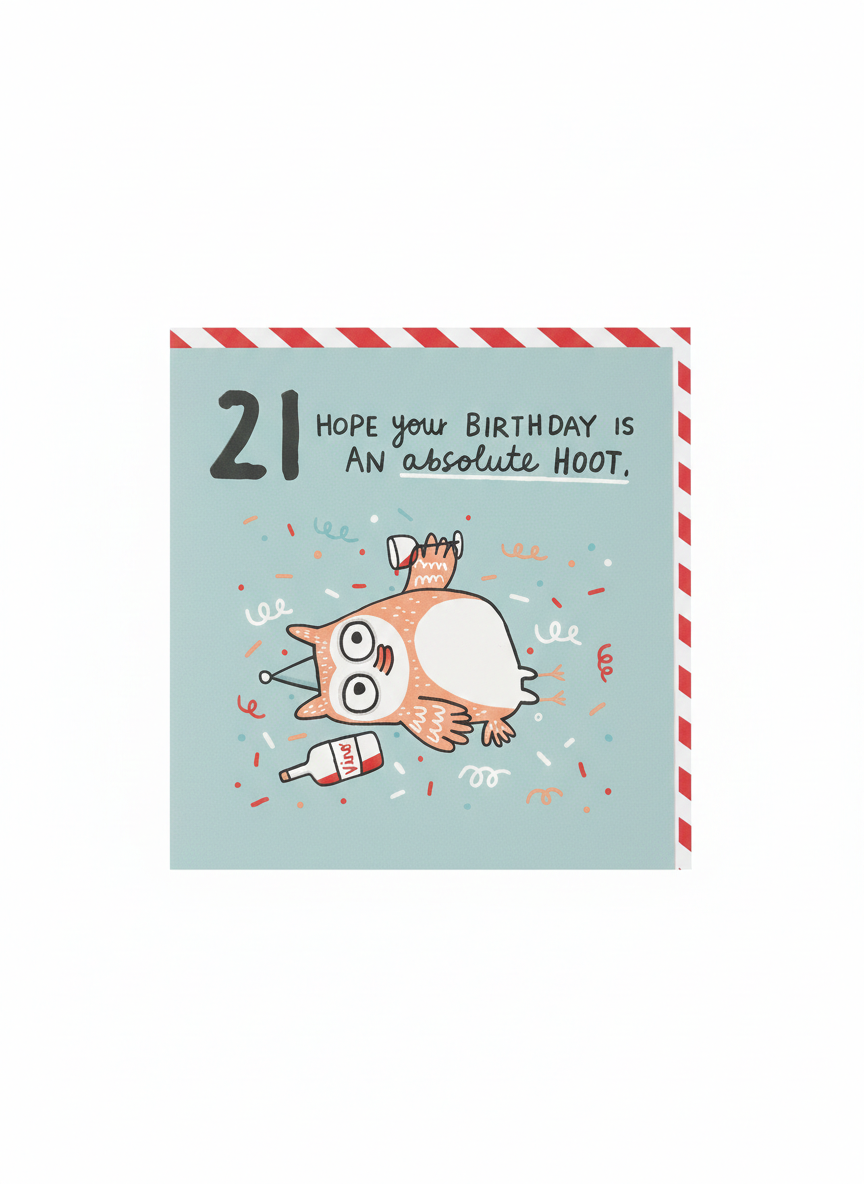 Blank inside for your own message, the 21st Birthday Card Cat & Wine is ideal for friends, family members or relatives celebrating their 21st birthday and fits seamlessly into a multiple-occasion card collection focused on humour, quality finishes and clear age messaging.