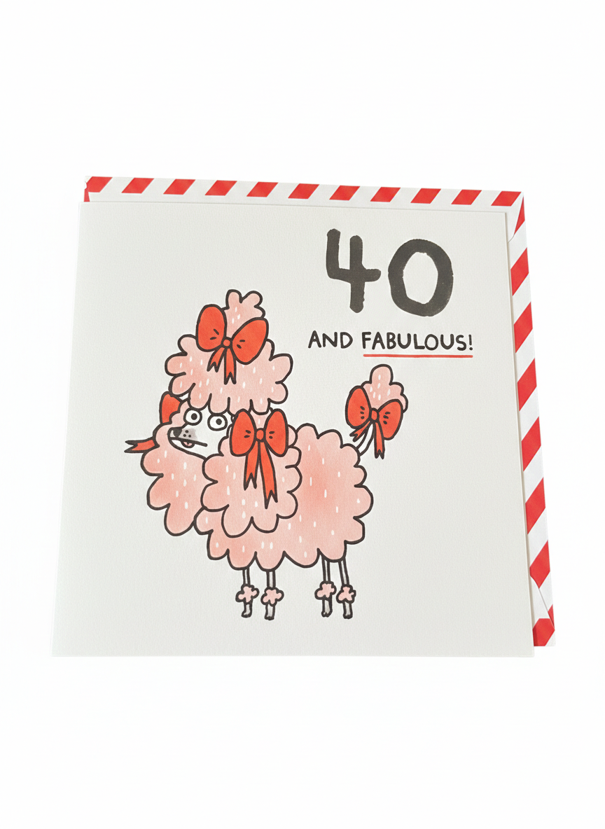 Add a touch of humour and personality to their milestone celebration with this fun 40th birthday card designed by Gemma Correll. Featuring a stylish poodle illustration with plenty of attitude, 40th Birthday Card Poodle is ideal for someone who appreciates quirky design and a light-hearted take on turning forty.