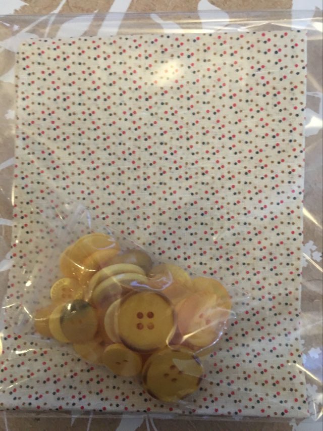 Glo Bright's mixed packs contain 1 x cotton fat quarter, plus 28g pack weight of mixed media buttons in a contrasting colour.