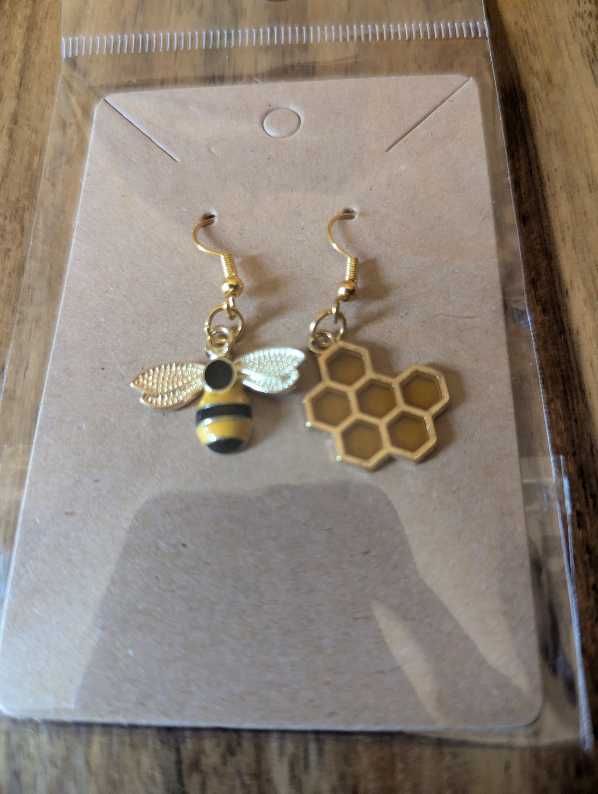 One bee, one honeycomb hanging earring, making a cute pair. To give you more options, why not buy 2 sets, so you can wear all bee or all honeycomb!