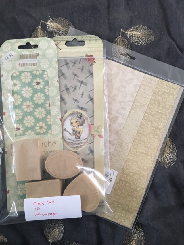 This set contains 1 x Deco Mache, and 1 x Santoro Decoupage papers (total £5.00), 1 x Pastel Creams Vintage Papers at £4.00, and 4 plain ring-sized boxes at £2.00.