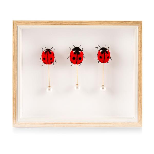 Each set contains 3 100% wool felted ladybirds (exclusive of decorations).