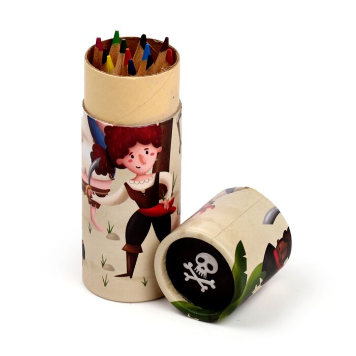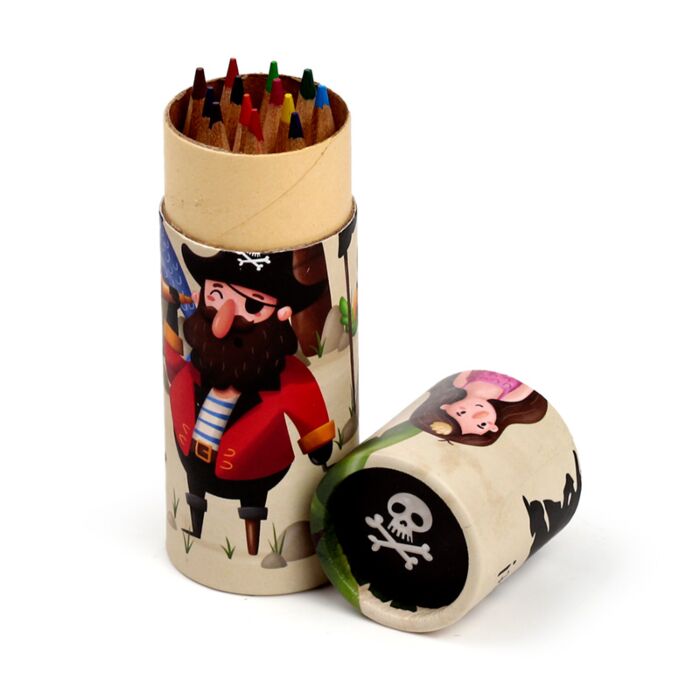 Jolly Rogers Pirates Pencil Pot with 12 Colouring Pencils