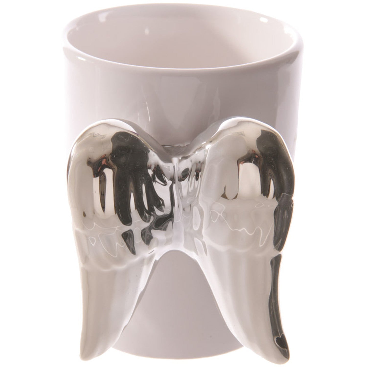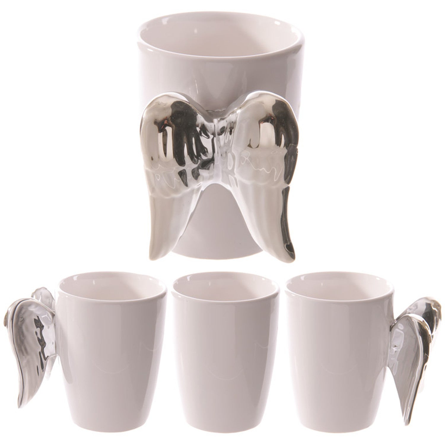 Silver Angel Wings Ceramic Shaped Handle Mug