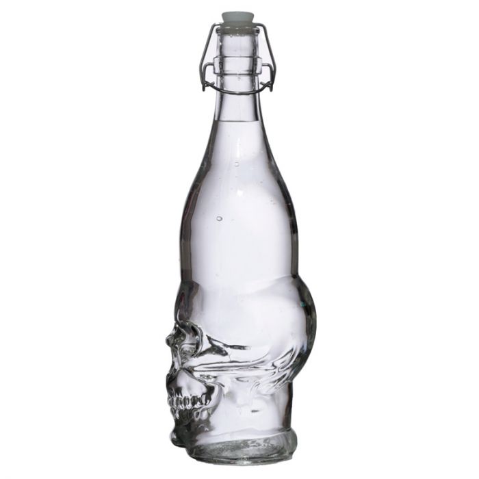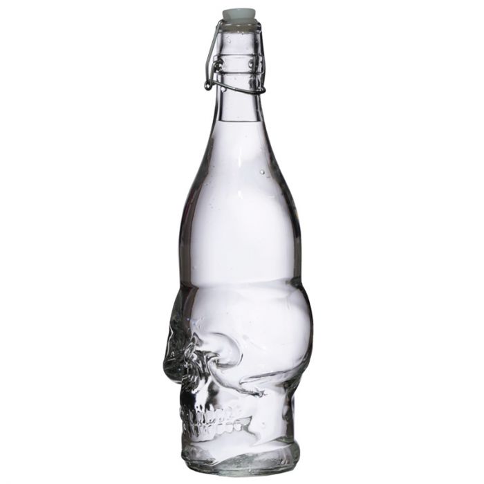 Skulls & Roses Clear Glass Skull Shaped Water Bottle 1L
