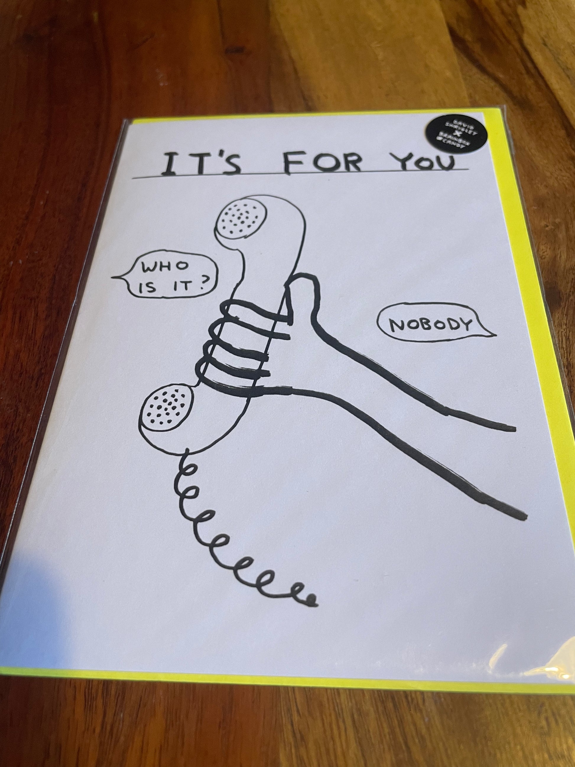 From award-winning visual artist, David Shrigley comes this characteristically irreverent card.